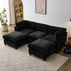 96.5'Sectional Couch for Living room, Upholstered Soft Chenille Fabric Sofa with Storage, 3-Seater with Two Ottomans U Shape Sofa Black-W1097S00285