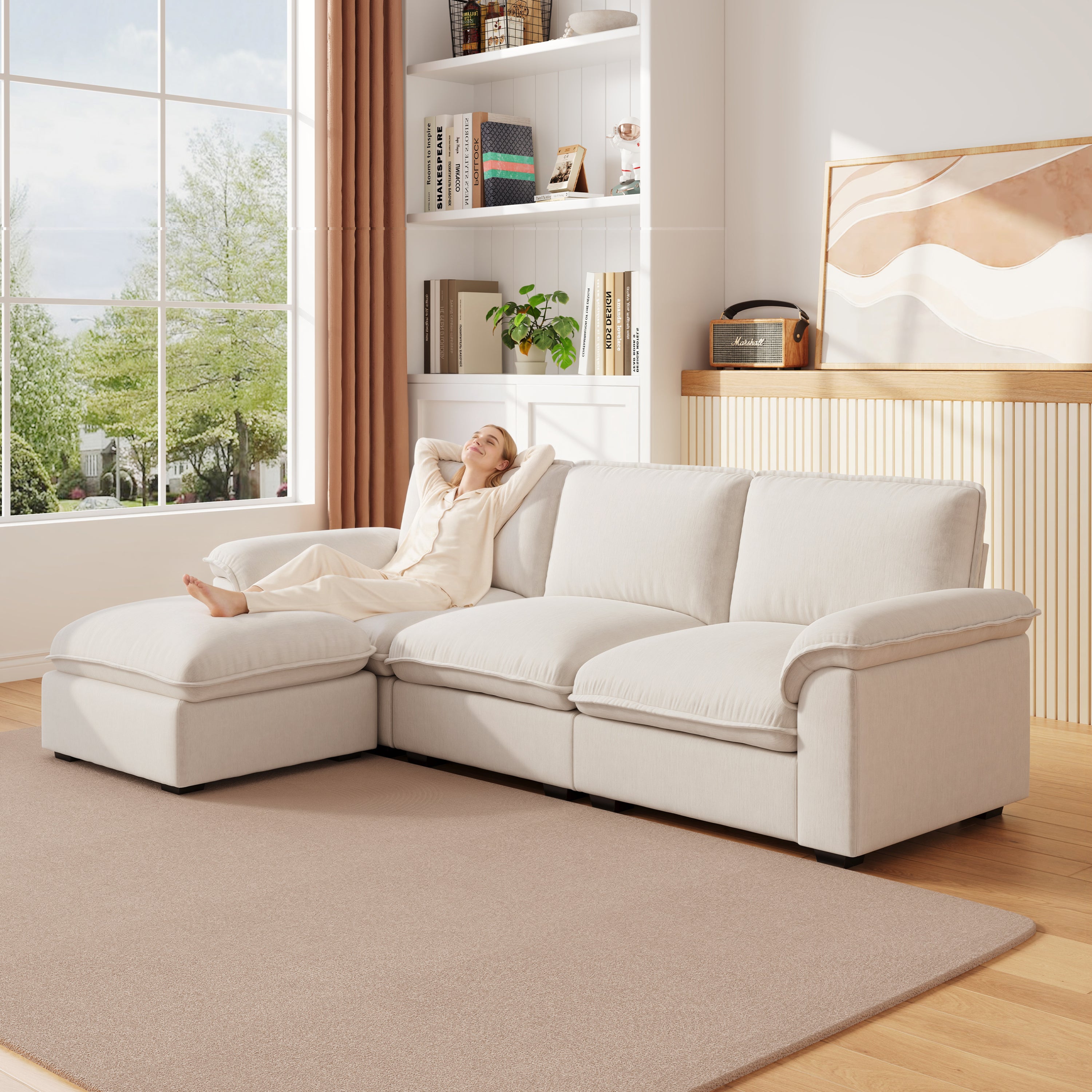 Cloud Couch Sectional for Living Room L Shaped Couch Modular Sectional Sofa Chenille Fabric for Apartment-W1359S00062
