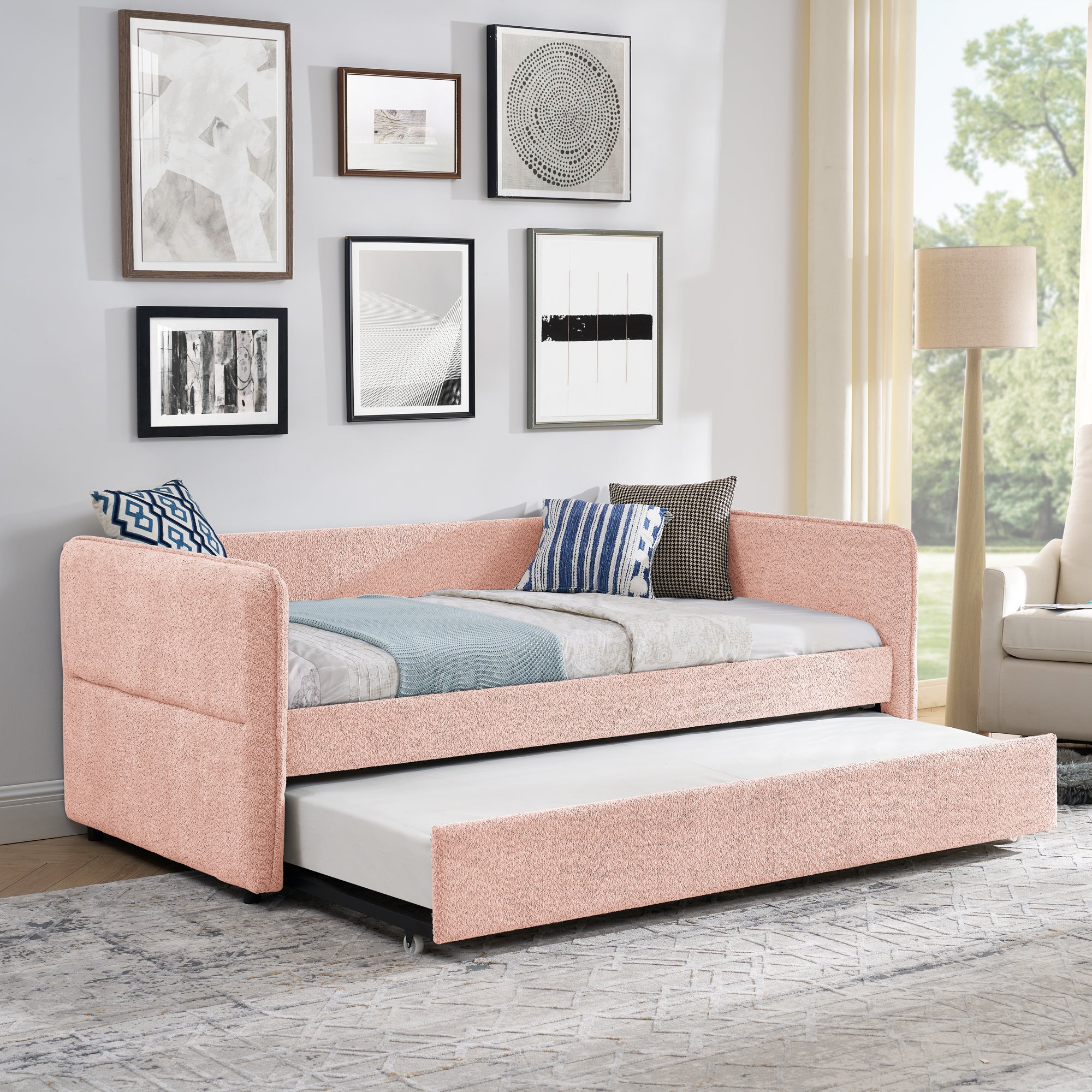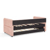 - [Functional Trundle] This exceptional piece of living room furniture is manufactured to meet your needs, allowing the cozy bed to not only afford a comfortable seating experience but also one trundle under the bed provide more sleeping space.