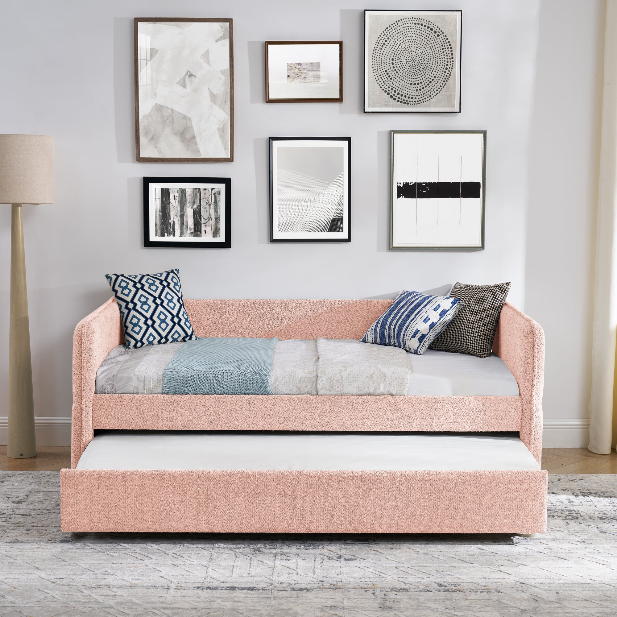 Daybed with Twin Size Pop-up Trundle Upholstered Tufted Sofa Bed, Twin Size, Boucle Fabric (83'x43'x29.5')-W1413S00172