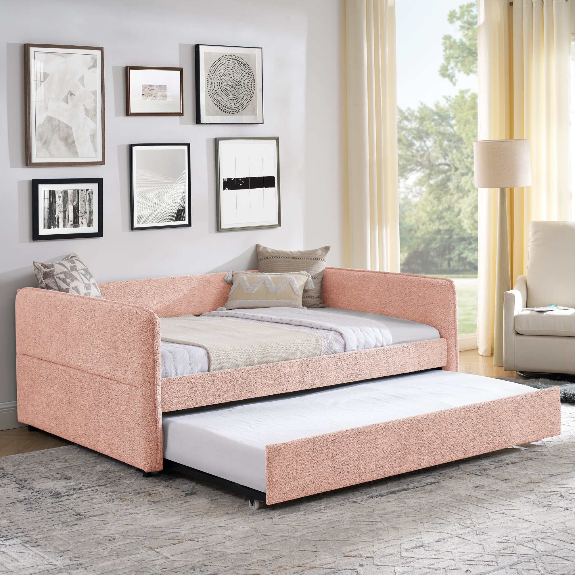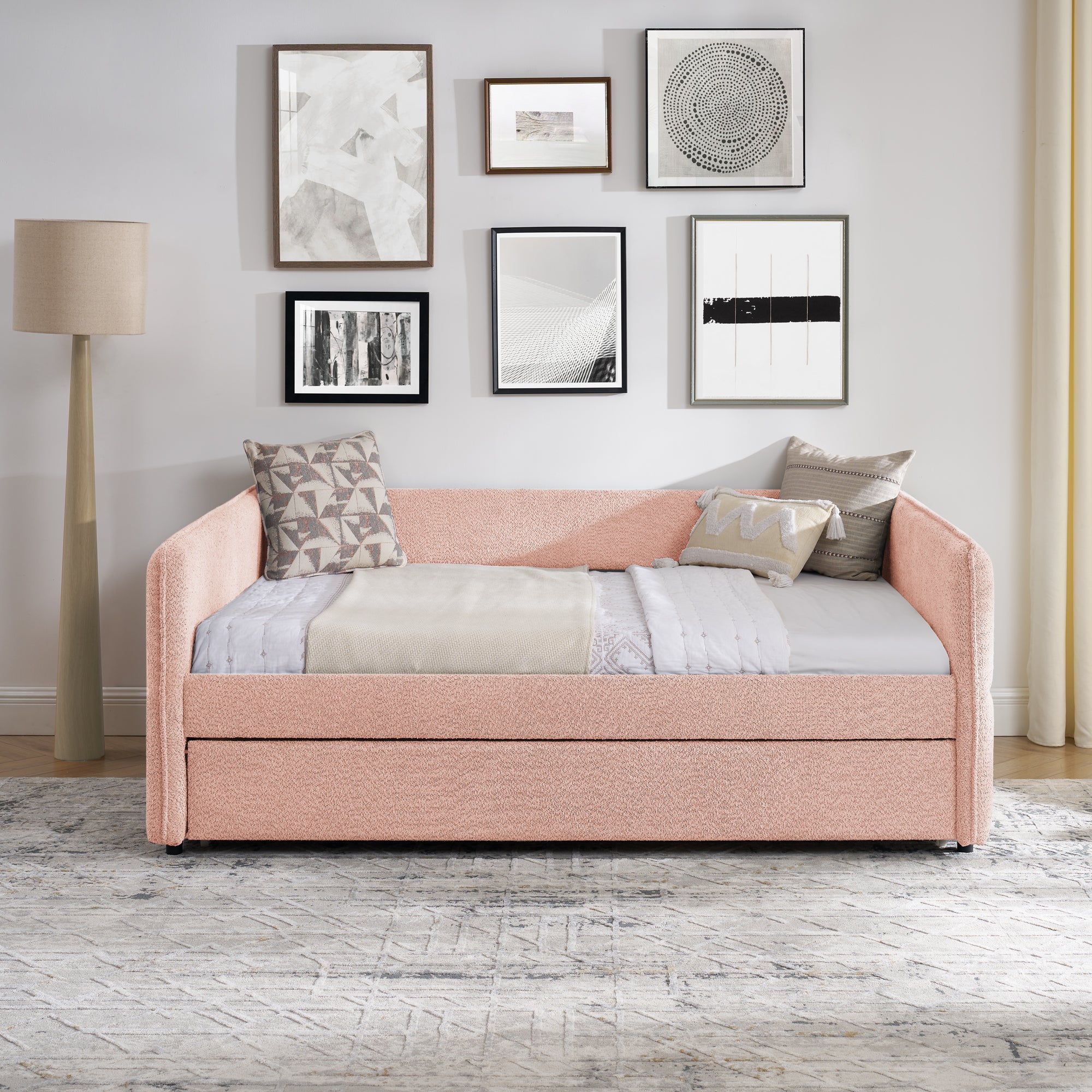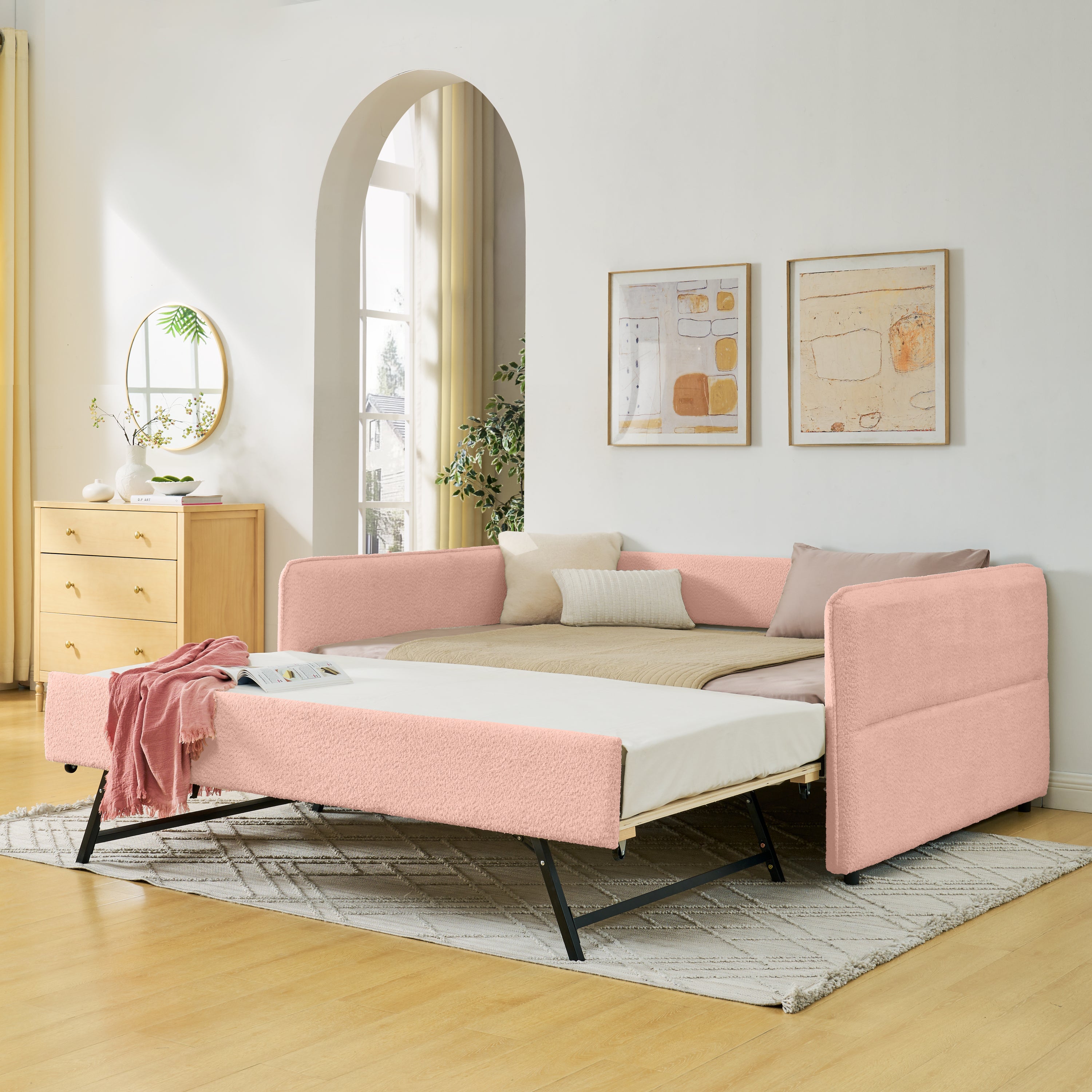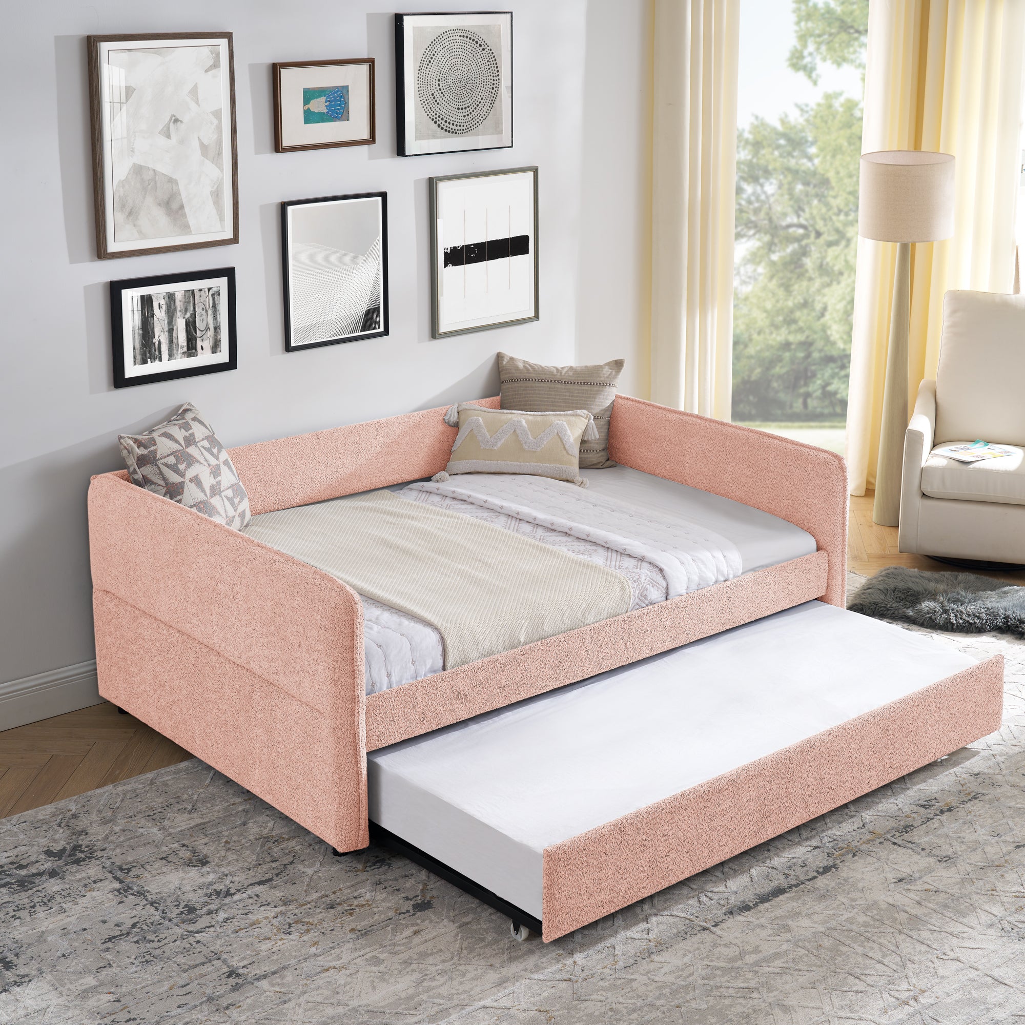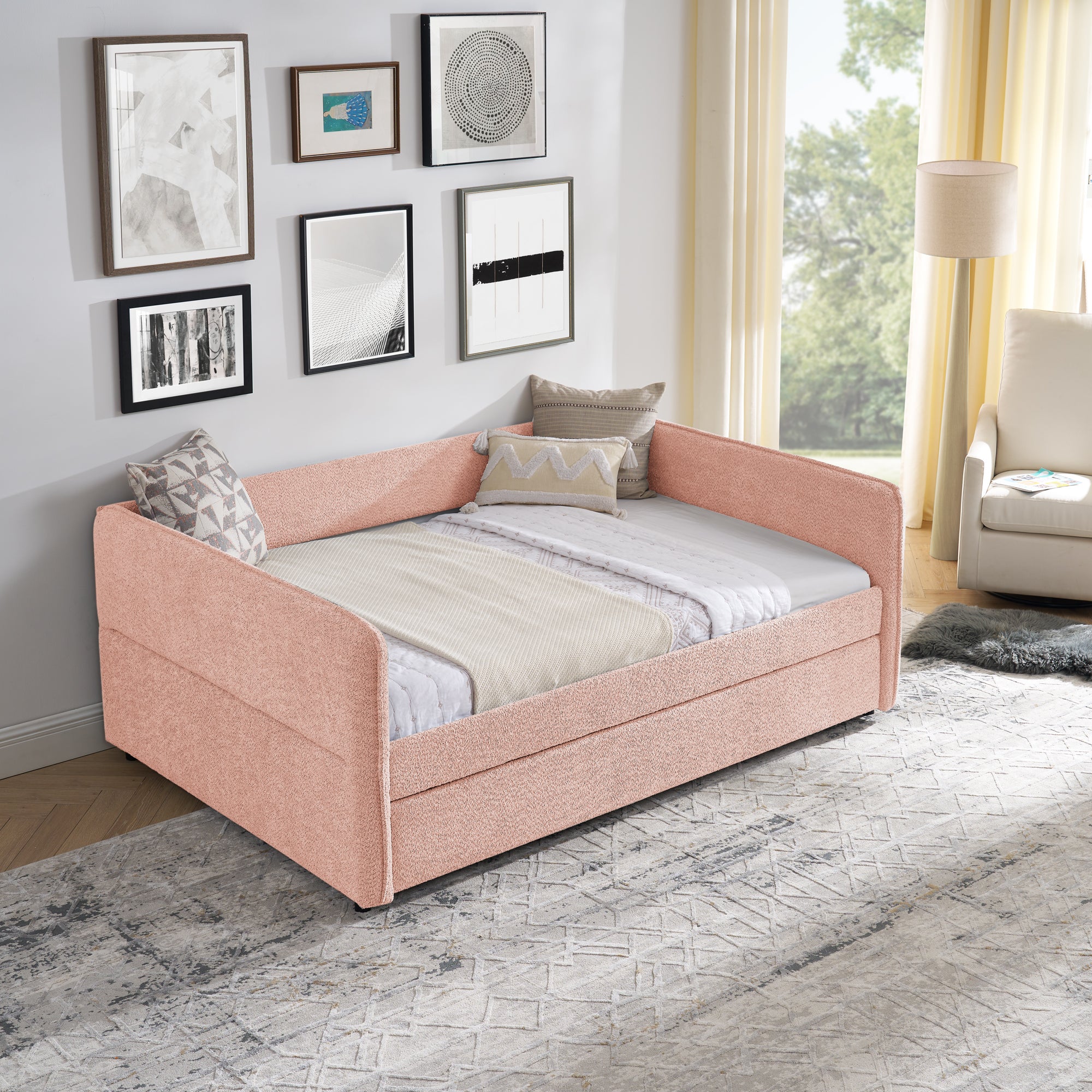 Specifications Place of Origin #originPlace# Main Color Pink Main Material Boucle Use Case Bedroom Bed Size Full Bed Type Daybeds Box Spring Requirements Box Spring Not Required Dangerous Goods #dangerFlag#...