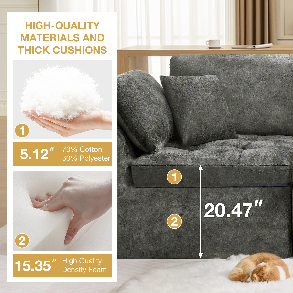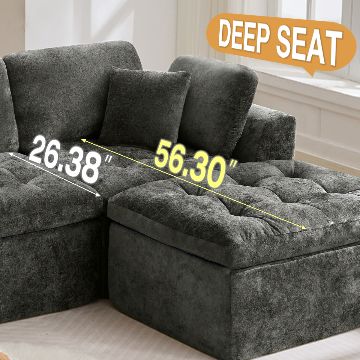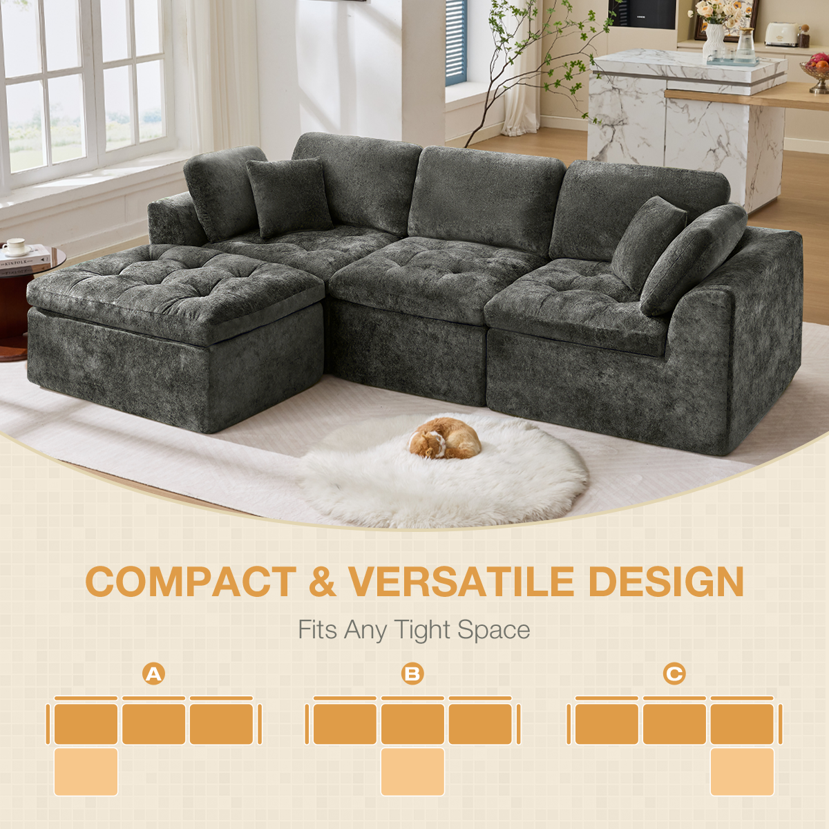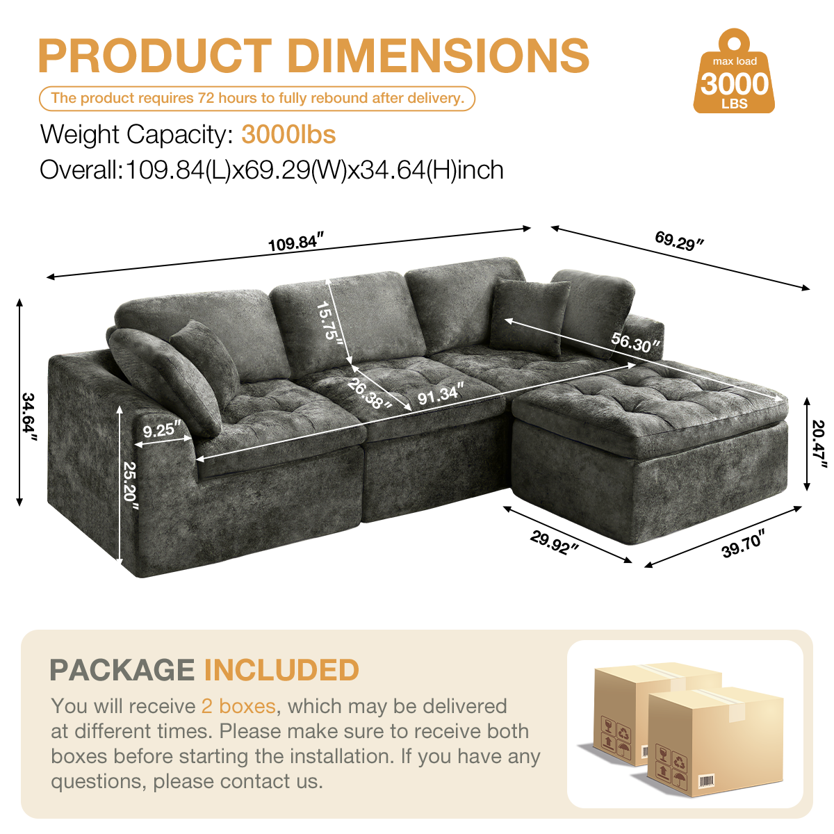 110' Cloud Sectional Couch for Living Room, Upholstered L-Shape Modular Sofa with Movable Ottoman, 3-Seater Deep-Seat Foam Couch, Comfortable Convertible Sectional for Home & Apartment-W1521S00084