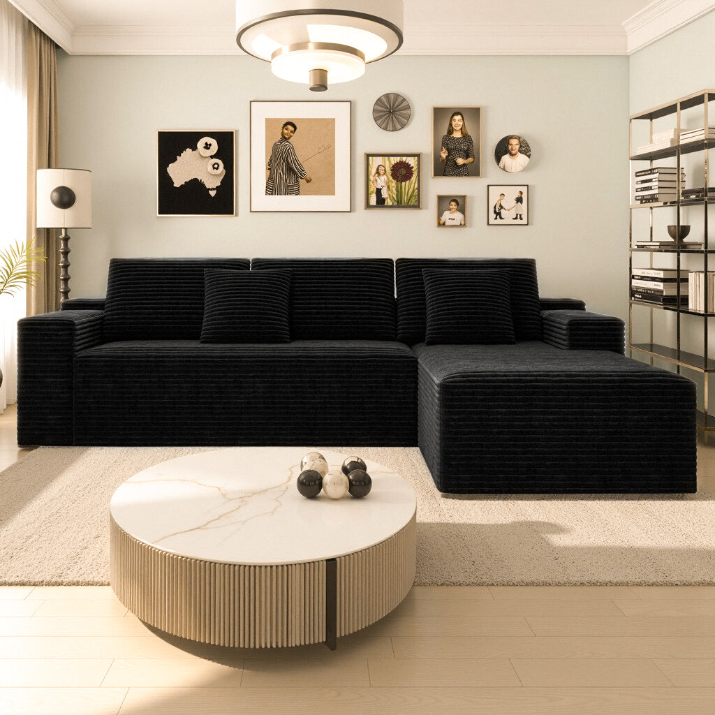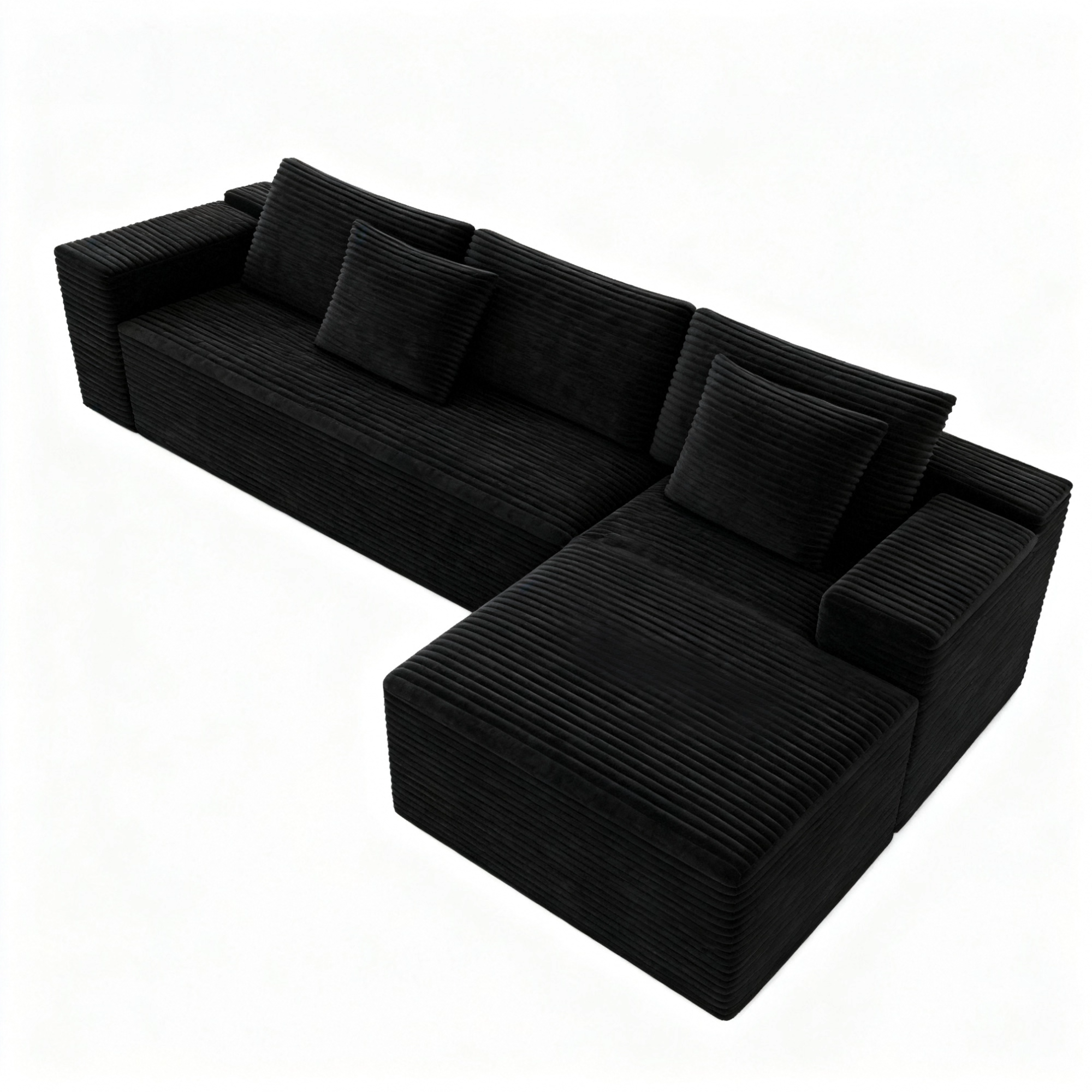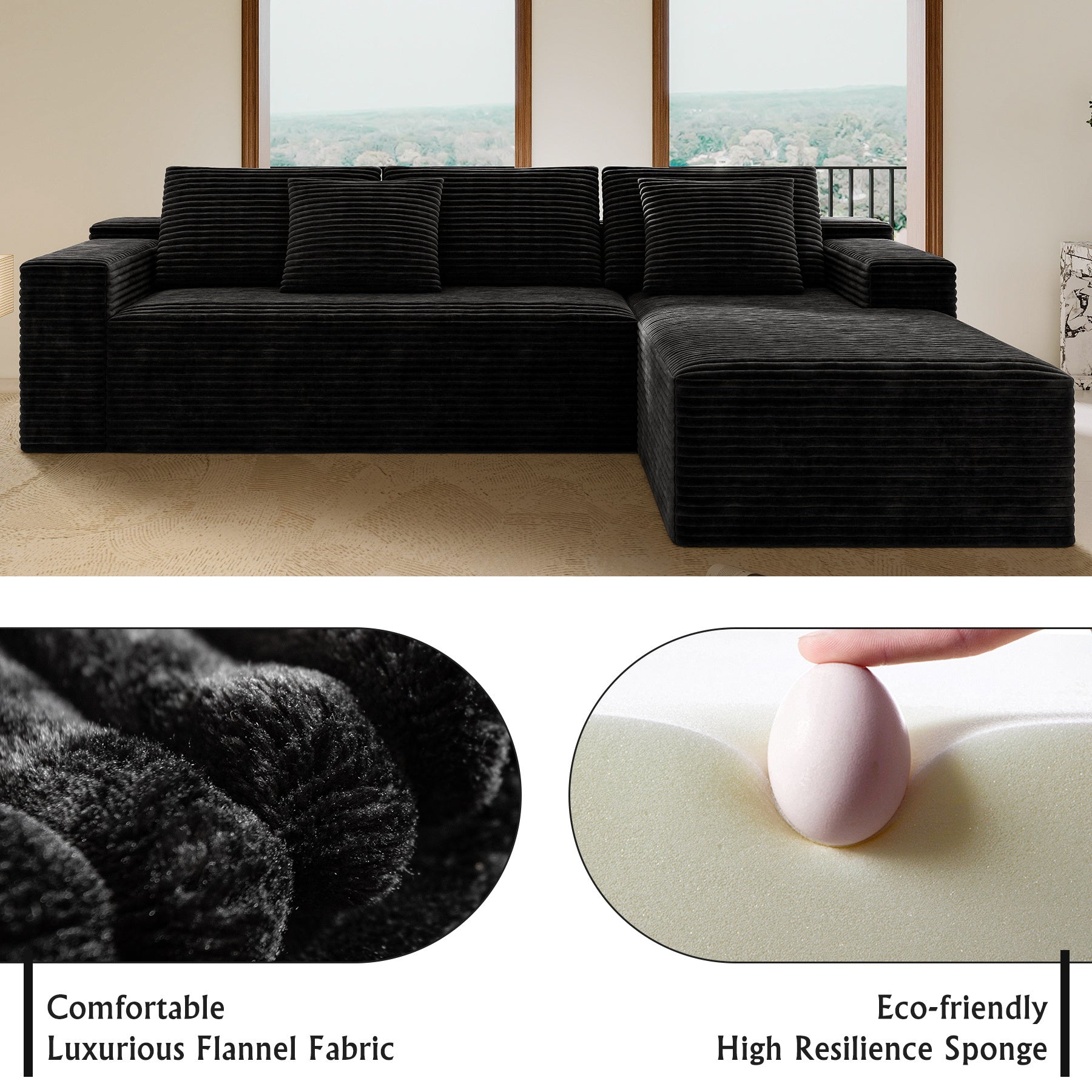 104.3*68.9'Modular sectional sofa seat,Upholstered compressed couch for living room,Bedroom,Apartment,No assembly required,2PC free combination,Plush corduroy fabric,BLACK-W3819P448418