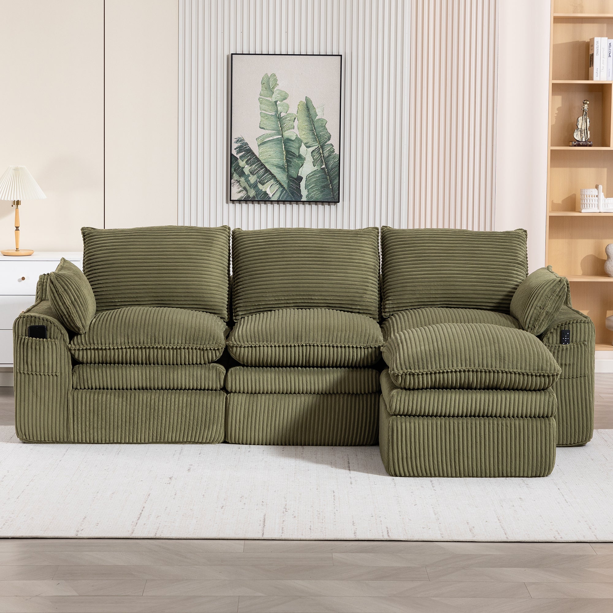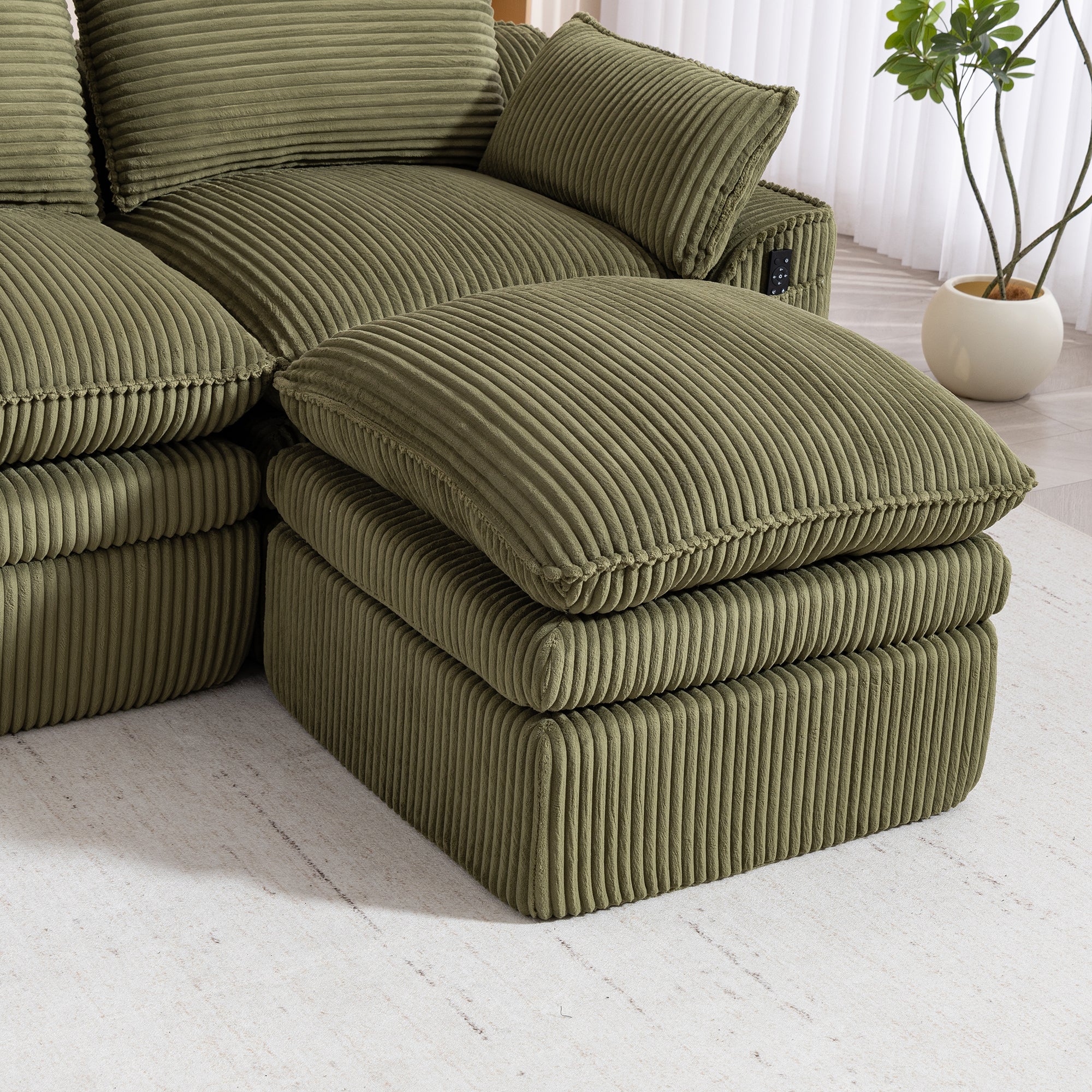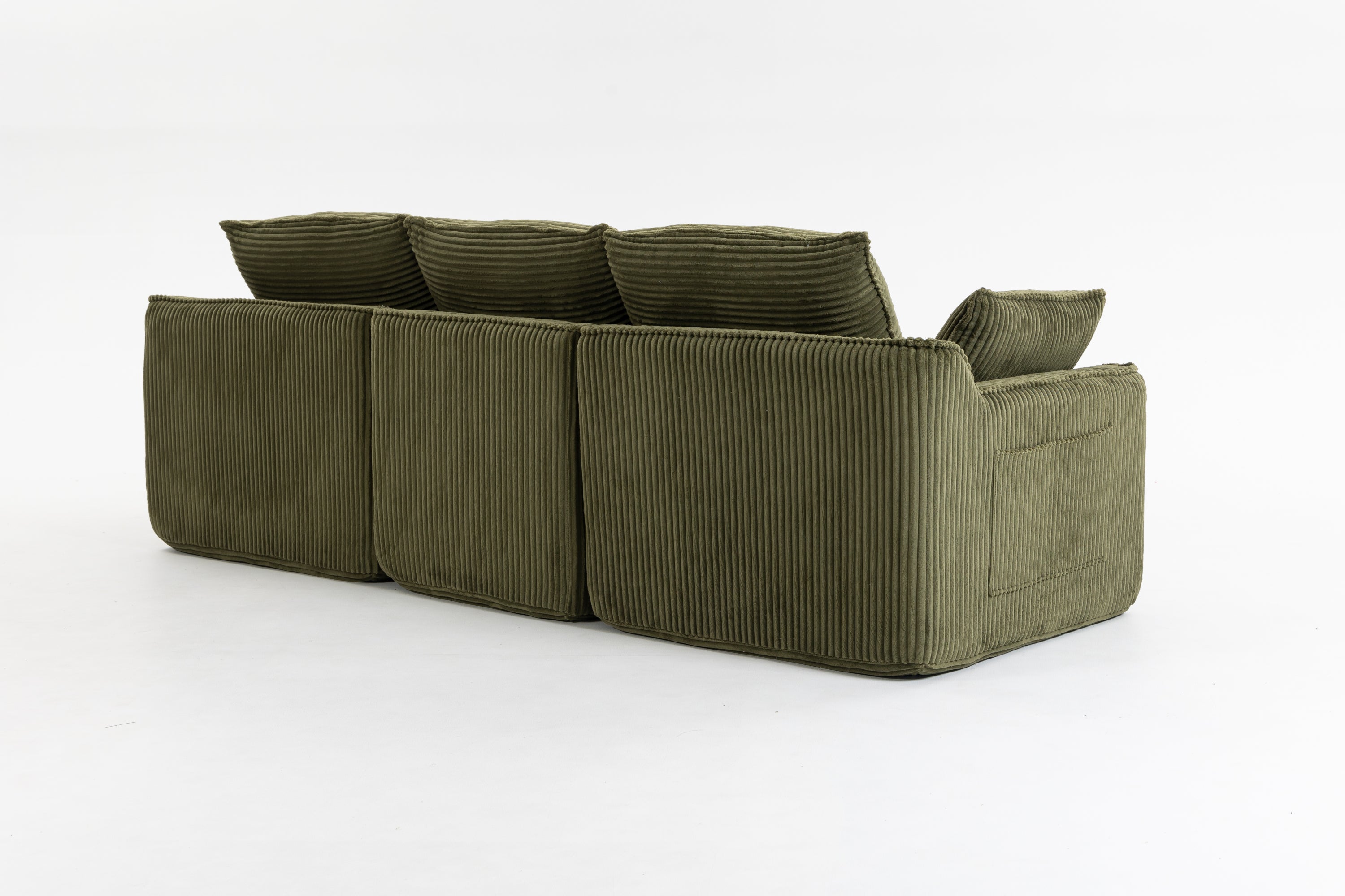 L Shaped Compressed Modular Sectional Sofa Modern Corduroy Upholstered Boneless Couches with Movable Footstool,With Three Pillows and Two Lumbar Pillows,Detachable Cloud Seat Cushions-W395S00139