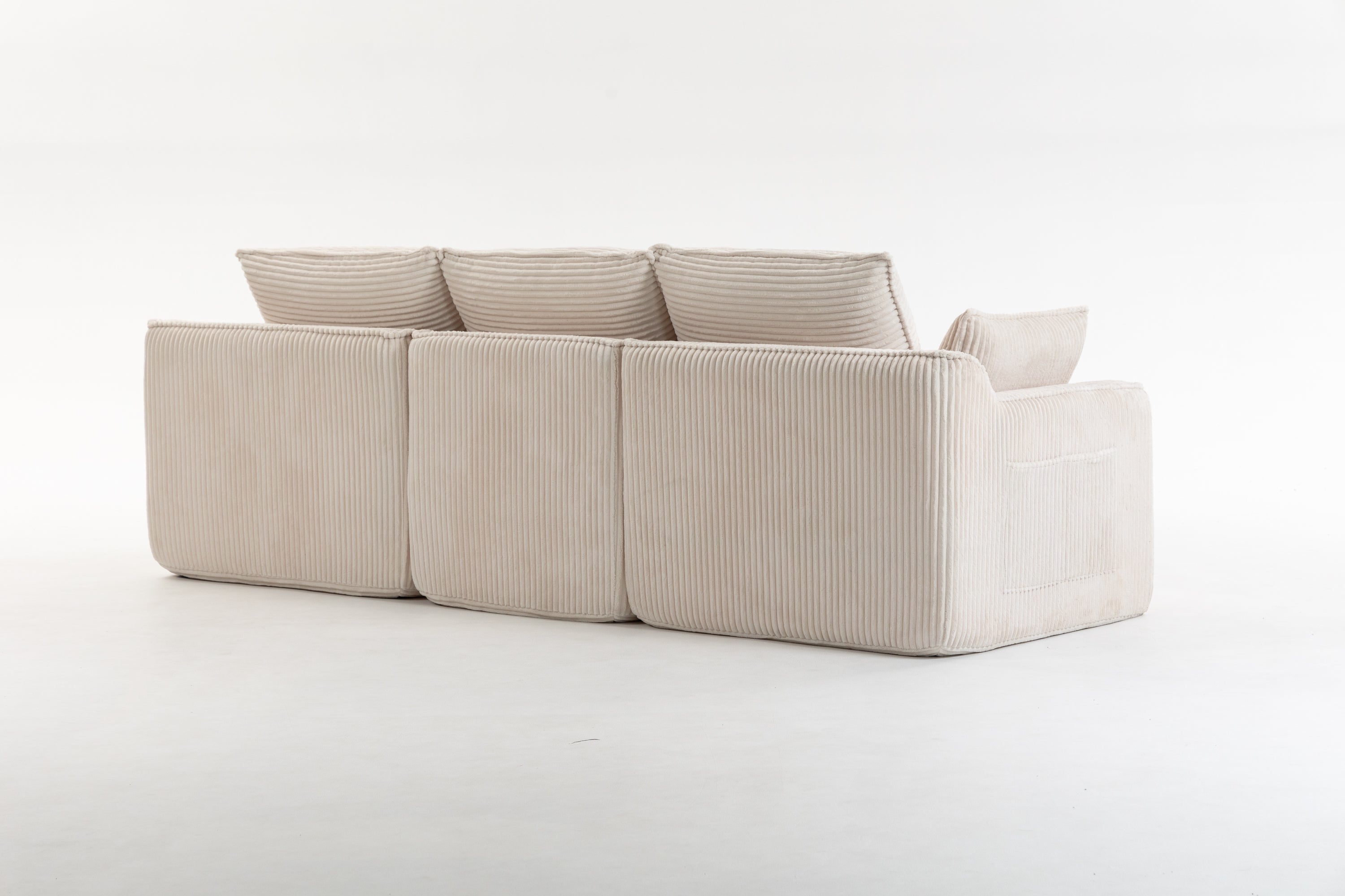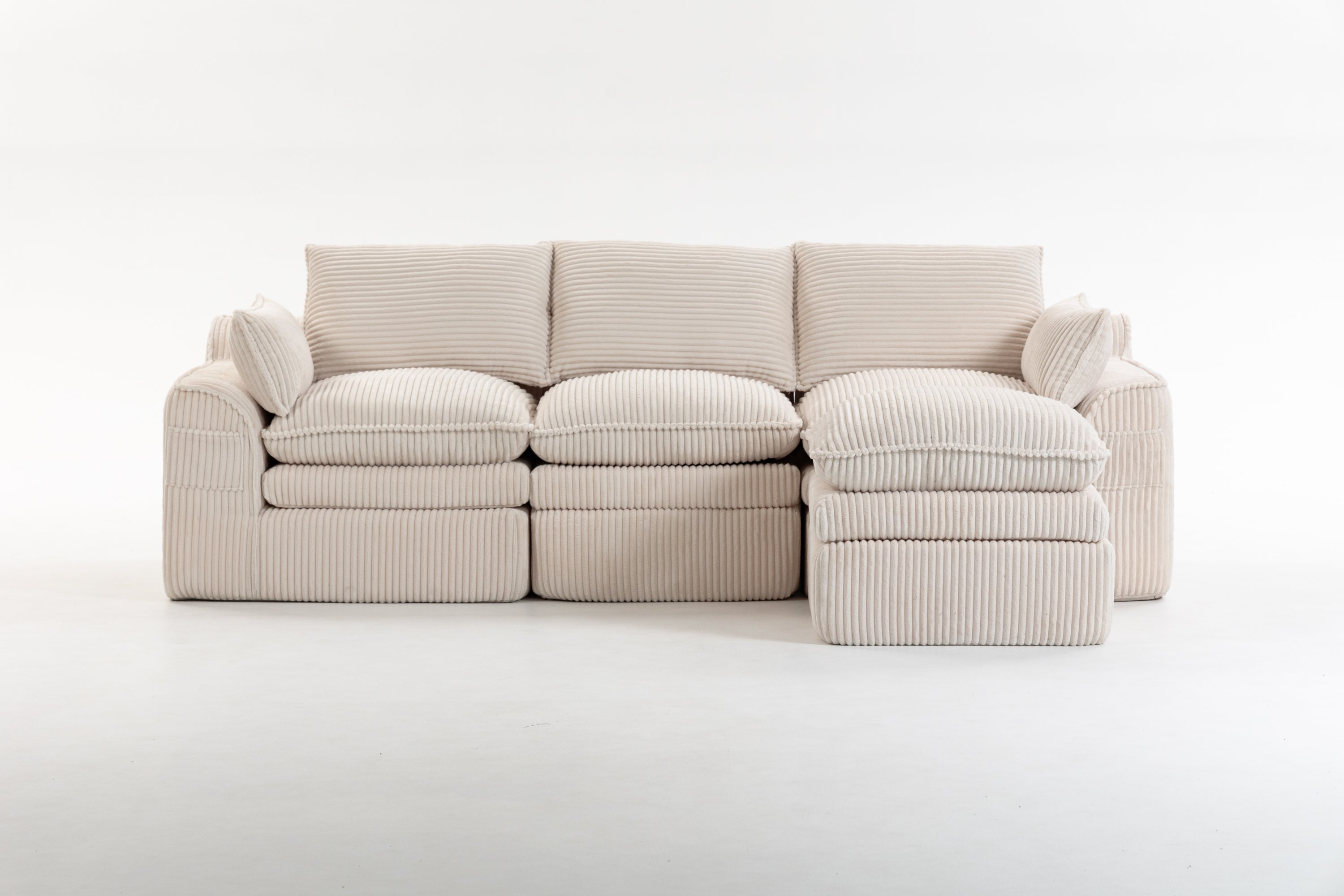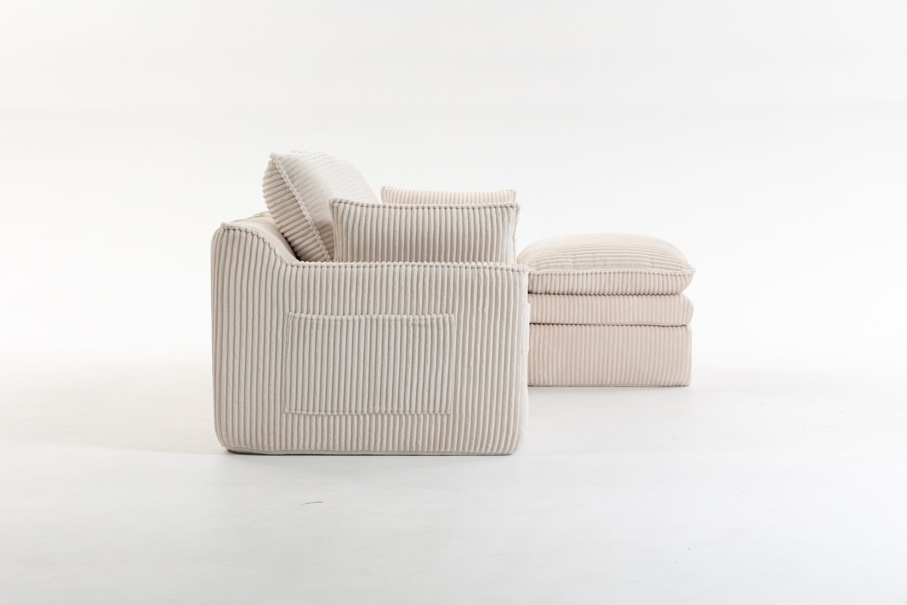 L Shaped Compressed Modular Sectional Sofa Modern Corduroy Upholstered Boneless Couches with Movable Footstool,With Three Pillows and Two Lumbar Pillows,Detachable Cloud Seat Cushions-W395S00141