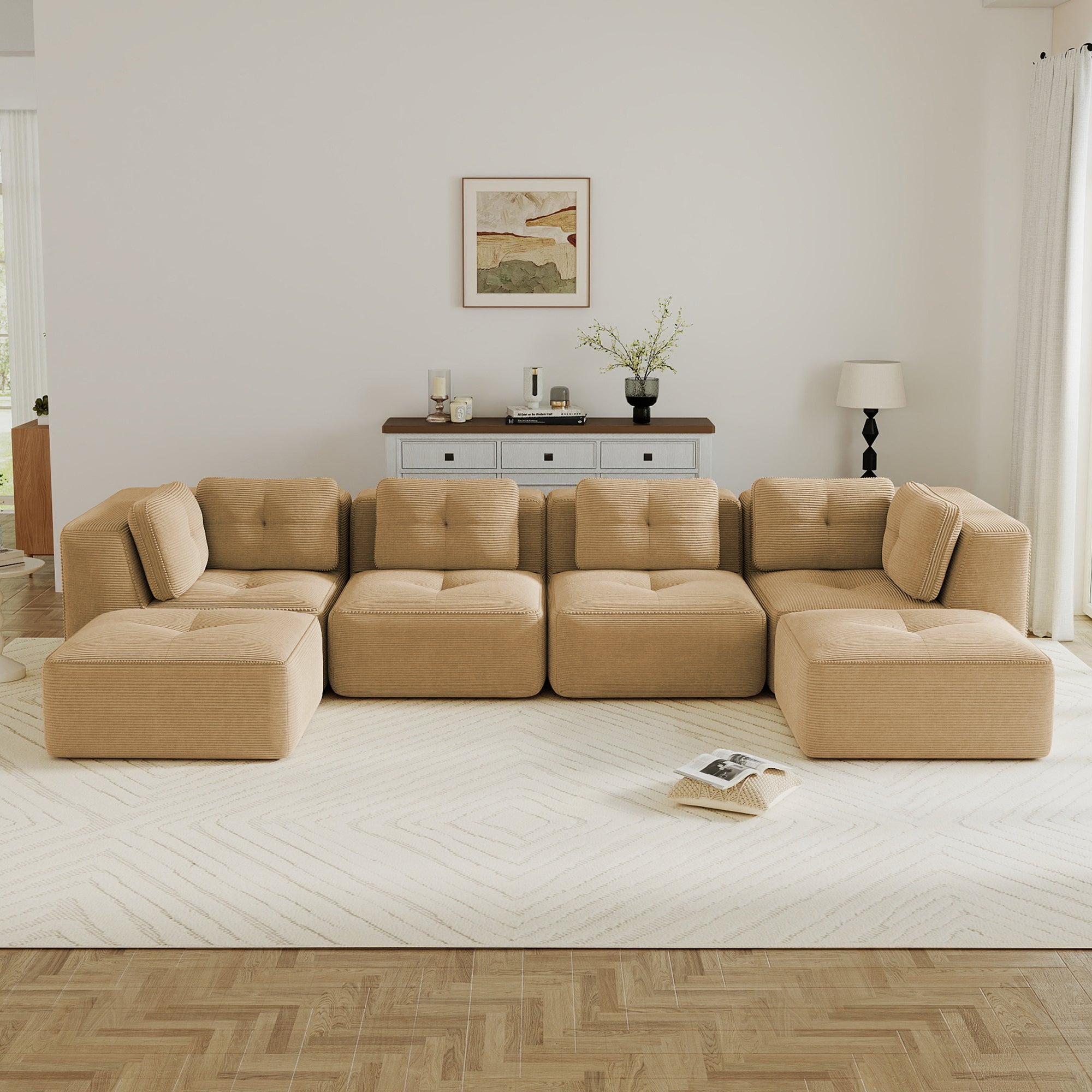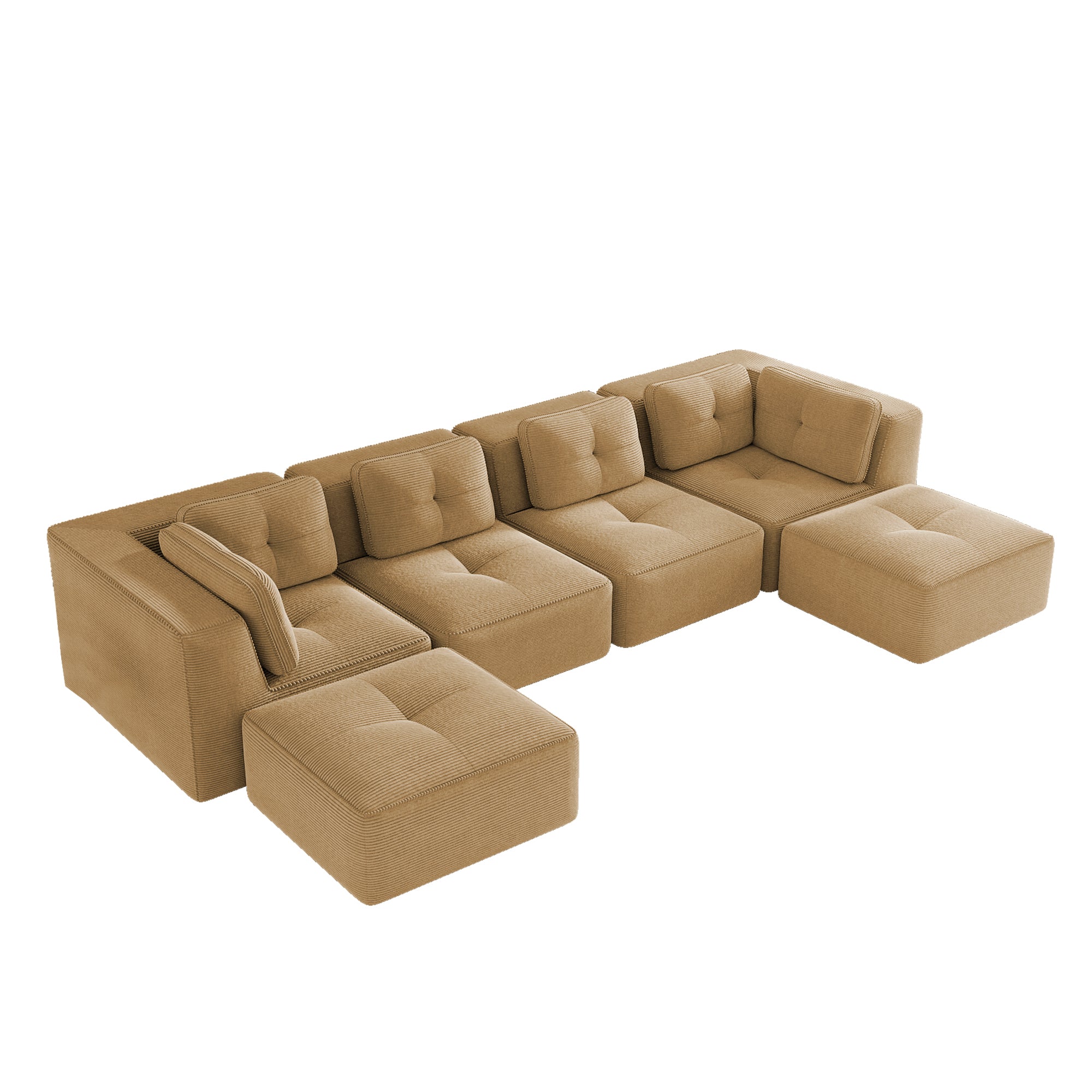 Modern U-Shaped Modular Sectional Sofa for Living Room, Corduroy Fabric, 4-Seater Couch with Deep Seat and 2-Movable Ottoman,Pearl-like piping, Tufted Design, No Assembly, Anti-slip Design, Camel-W714S01788