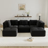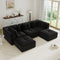Modern U-Shaped Modular Sectional Sofa for Living Room, Corduroy Fabric,3-Seat Couch with Deep Seat and 2-Movable Ottoman,Pearl-like piping, Tufted Design, No Assembly, Anti-slip Design, Black-W714S01791