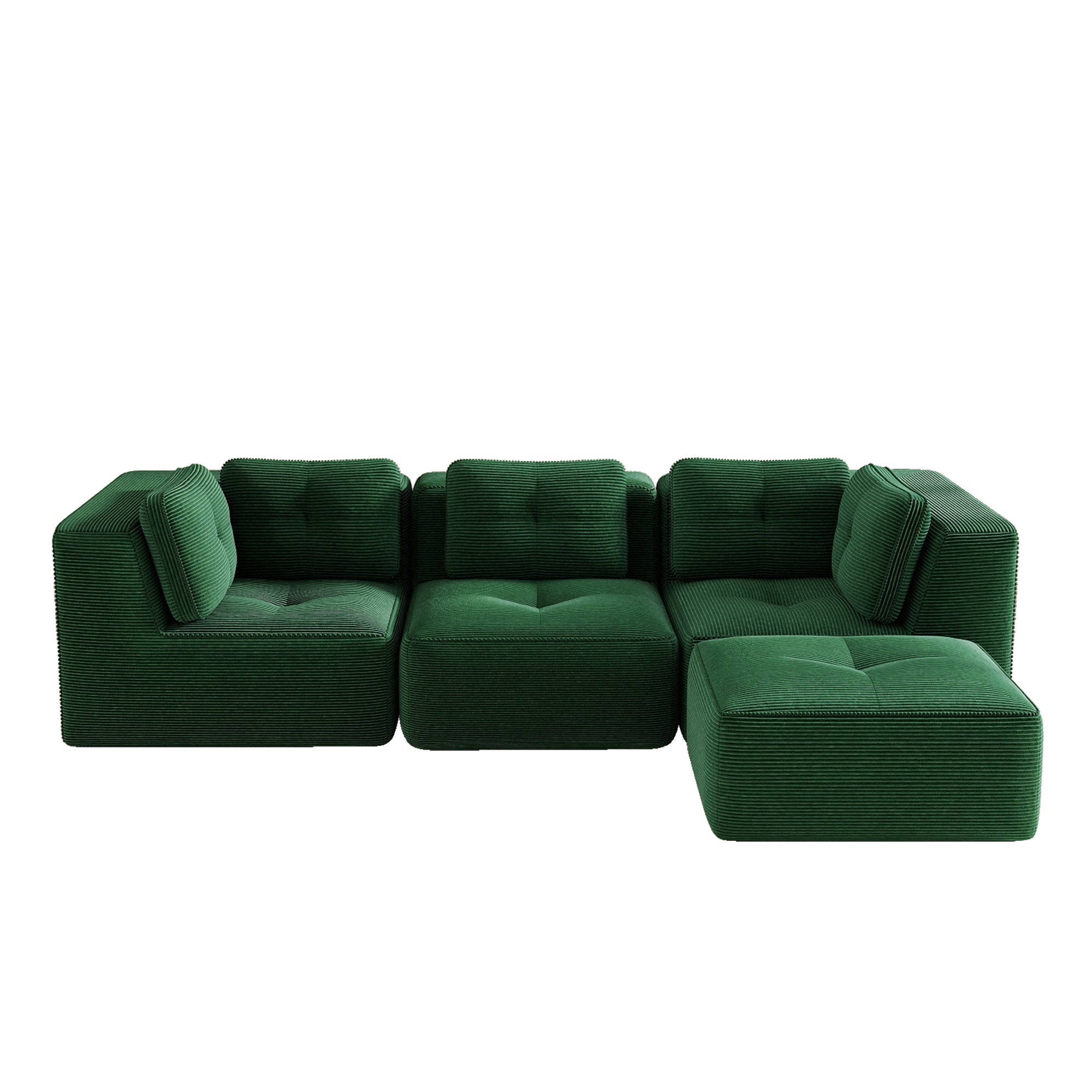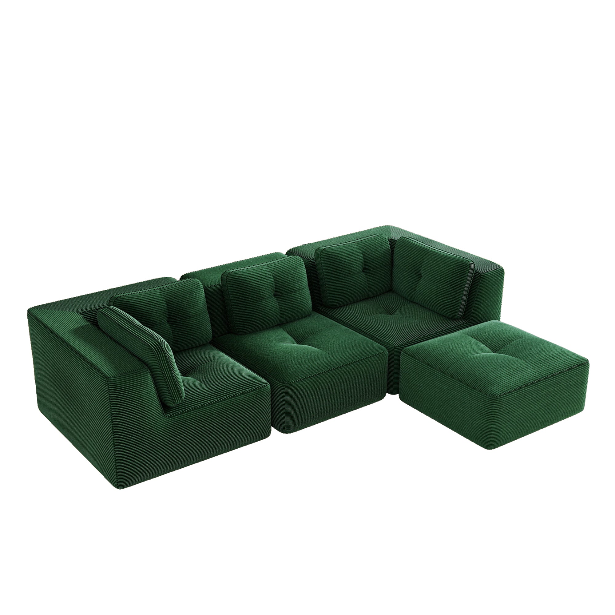 Modern Modular Sectional Sofa for Living Room, Corduroy Fabric,3-Seater Couch with Deep Seat and Movable Ottoman,Pearl-like piping, Tufted Design, No Assembly, Anti-slip Design, Green-W714S01796