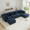 Modern Modular Sectional Sofa for Living Room, Corduroy Fabric,4-Seater Couch with Deep Seat and 2-Movable Ottoman,Pearl-like piping, Tufted Design, No Assembly, Anti-slip Design, Blue-W714S01806