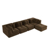 Modern Modular Sectional Sofa for Living Room, Corduroy Fabric, 4-Seater Couch with Deep Seat and Movable Ottoman,Pearl-like piping, Tufted Design,No Assembly, Anti-slip Design,Brown-W714S01811