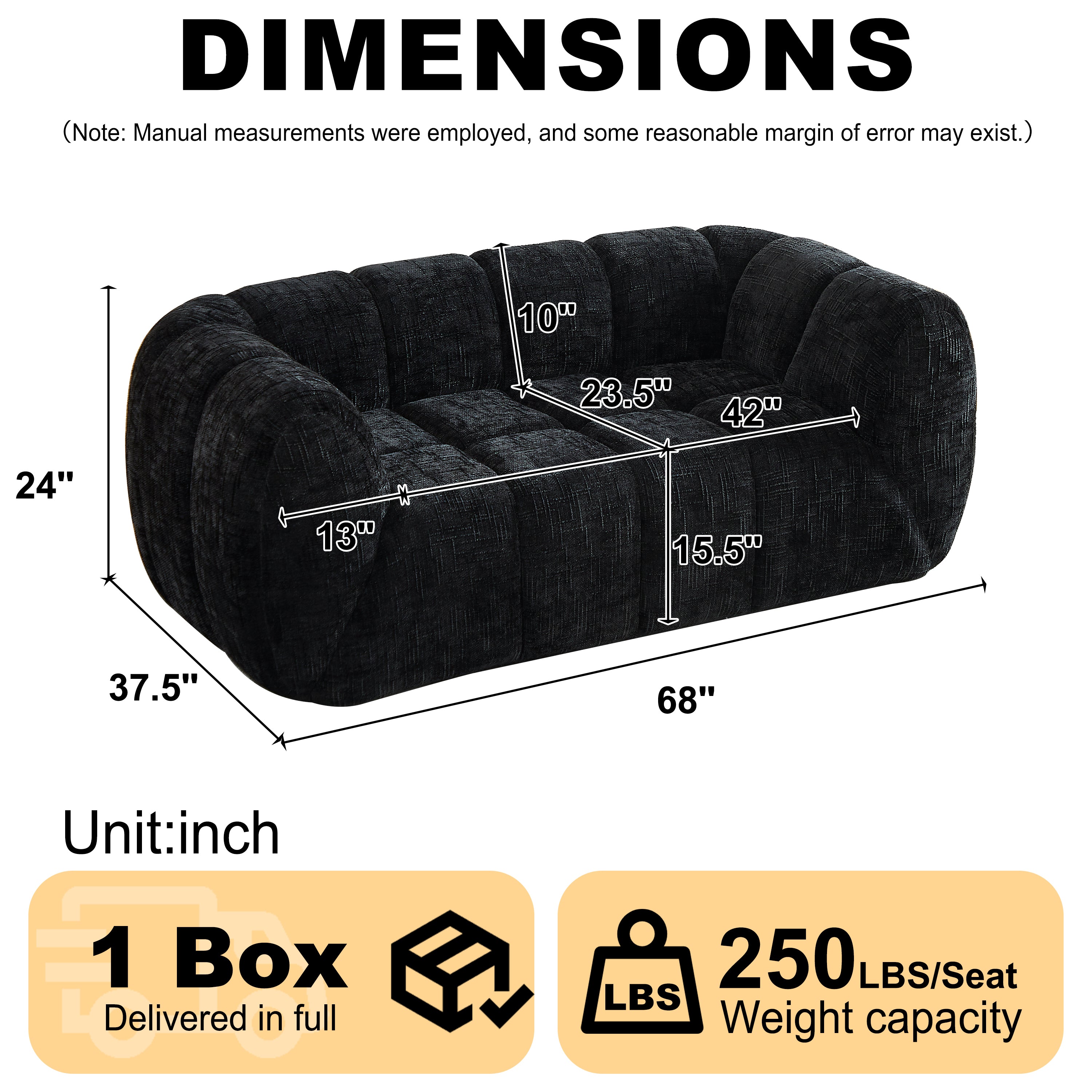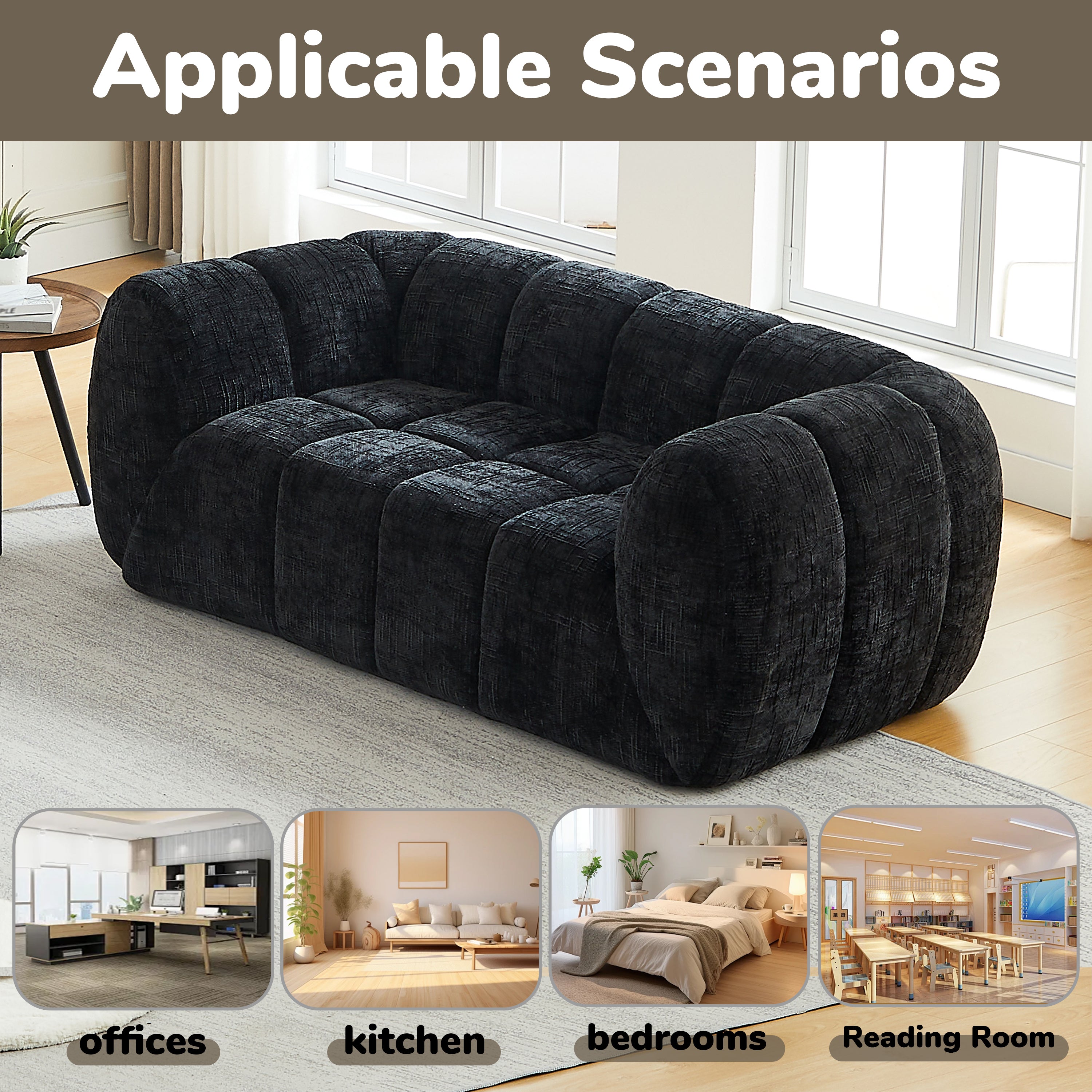 Chenille Pure Foam Sofa, Modern Quilted Cloud Sofa, Deep-Seat Chenille Pure Foam Sofa, Comfortable Modern Sofa, Suitable for Living Rooms, Bedrooms, and Apartments-W834P442227