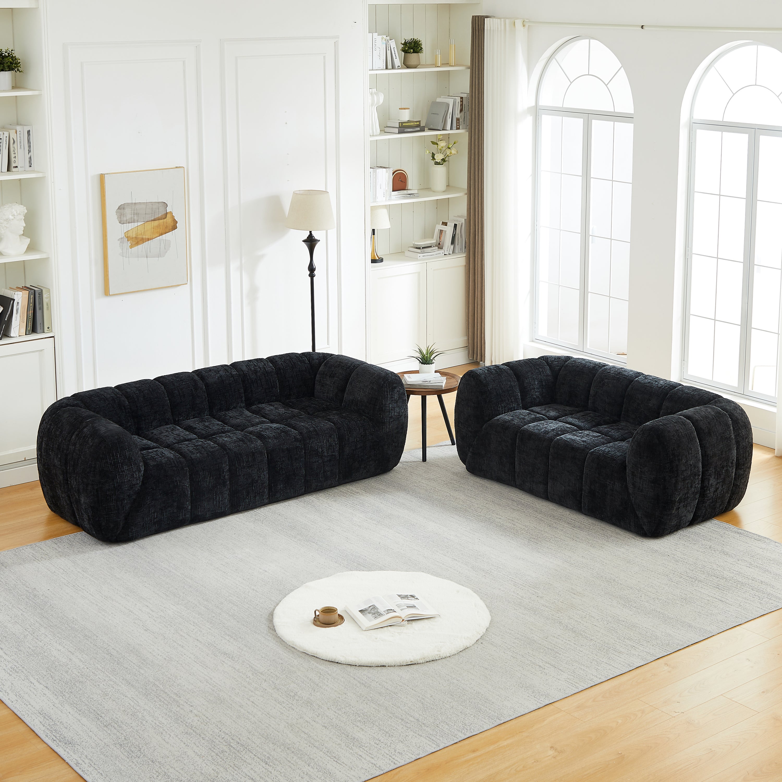 Chenille Pure Foam Sofa, Modern Quilted Cloud Sofa, Deep-Seat Chenille Pure Foam Sofa, Comfortable Modern Three-Seater Sofa, Suitable for Living Rooms, Bedrooms, and Apartments-W834S00640