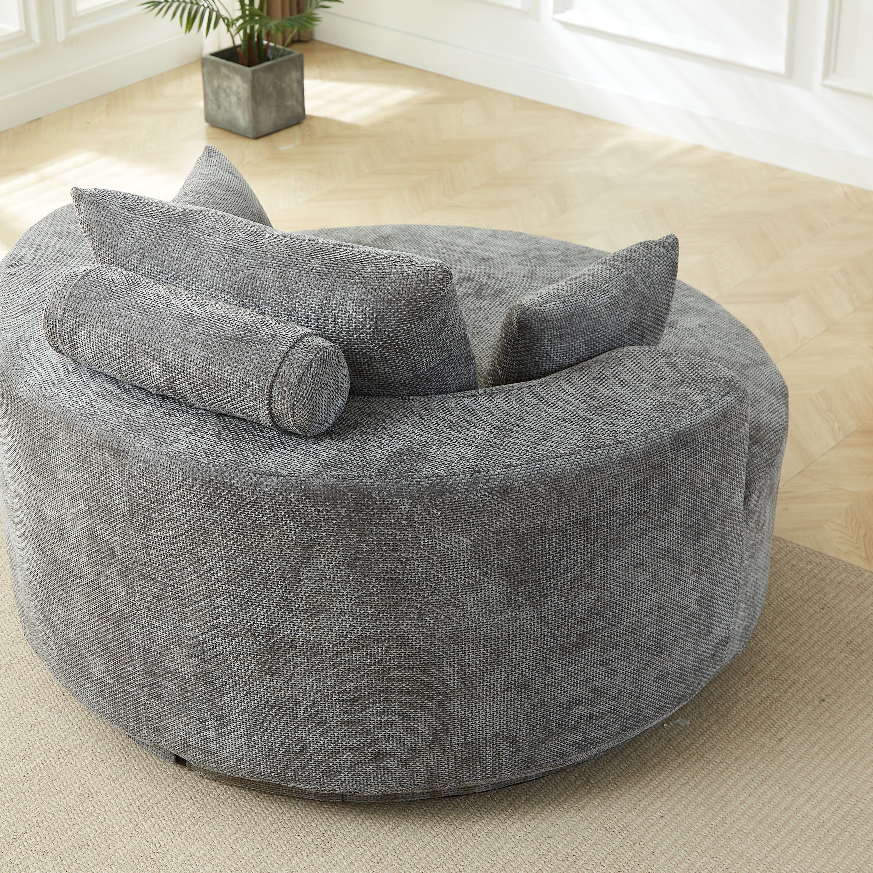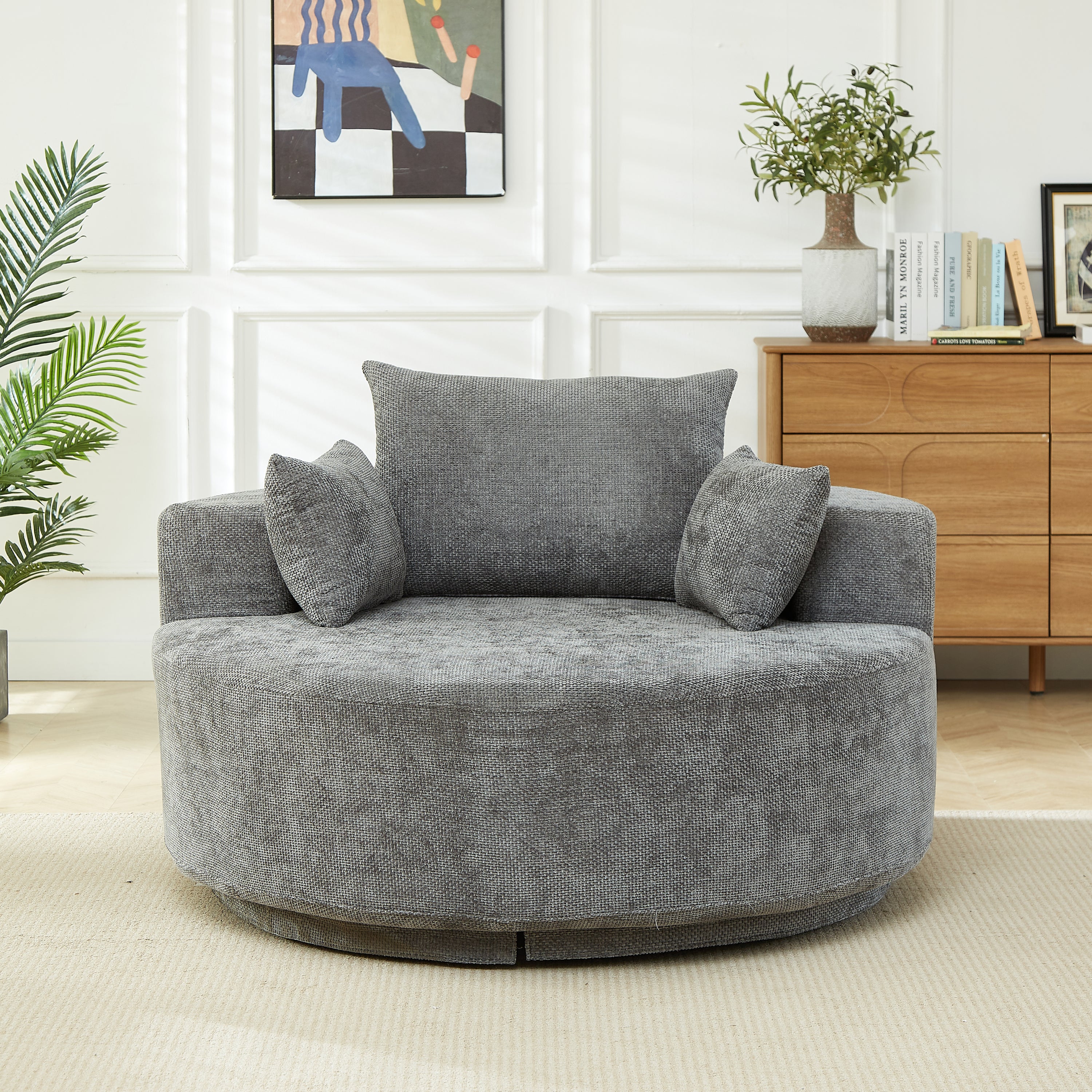 55''L Chenille Foam Single Swivel Chair, Fluffy Modern Sleeper, 360 Degree Swivel Chair for Living Room, Bedroom, Lounge and Projection Room-W834S00643